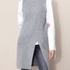 Light Gray Sleeveless Plain Slit Crew Neck Sweater