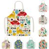 Cartoon Dinosaur Cute Apron For Children Kitchen Cooking Linen Soft Fabric Adults Children Bib Apron