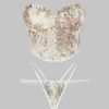 Boned Detail Floral Print Embroidered Detail Mock Button Thong Lingerie Set L Light yellow