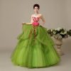 2018 Fashion Flowers Bow Sweetheart Ball Gown Quinceanera Dresses Lace Up Green Organza Sweet 16 Dresses Debutante 15 Year Party Dress BQ111