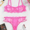 Underwire Cutout Sheer Lace Lingerie Set S Light pink