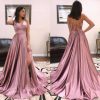 Blush Pink Side Split Long Evening Dresses 2021 Halter V Neck Criss Cross Back Sweep Train Satin Formal Prom Party Gowns