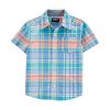 osh kosh boys' woven buttonfront, blue/orange plaid, 5t